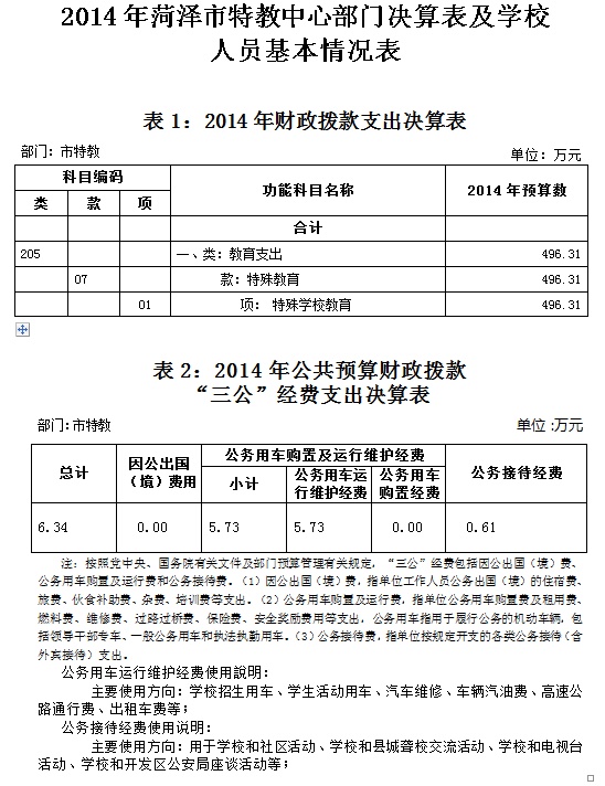 2015年菏澤市特教中心部門預(yù)算公開表格