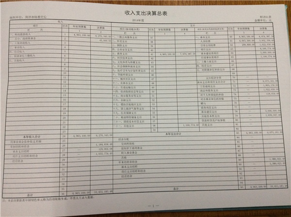 2014年菏澤市特教中心部門決算公開表格