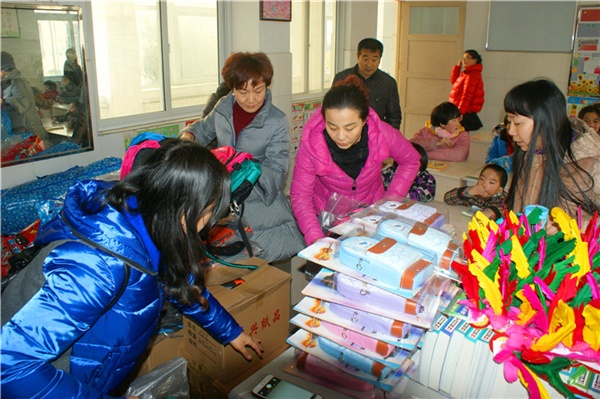 “愛心大篷車”向市特教中心捐獻(xiàn)了百本圖書、書包文具等各五十個,跳繩、毽子等健身用品幾大箱,還有她們精心為為學(xué)生們挑選的八成新的衣物二百多件。在捐贈儀式上,劉主任發(fā)表熱情洋溢的講話,她希望殘疾孩子能珍惜眼前的幸福生活,努力學(xué)習(xí),將來為社會做出應(yīng)有的貢獻(xiàn),并向在場的聾一、二年級的學(xué)生發(fā)放了愛心書包、文具盒和彩筆。市特教中心張校長代表全體盲聾啞學(xué)生接受了捐贈,并回贈了“愛心杯”以示感謝。儀式結(jié)束——劉主任等還親切地和孩子們用手語交流,并合影留念,讓殘疾學(xué)生在寒冬里再次感受到了溫暖。