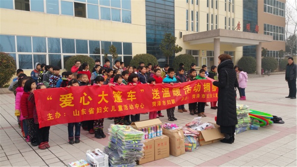 12月28日,菏澤市婦聯(lián)“愛(ài)心大蓬車(chē)”再次來(lái)到市特教中心,向這里的盲聾啞學(xué)生捐獻(xiàn)了生活學(xué)習(xí)用品和體育用品等一大宗,表達(dá)了濃濃的關(guān)愛(ài)情。市婦聯(lián)領(lǐng)導(dǎo)在講話中對(duì)同學(xué)們寄于殷切希望.