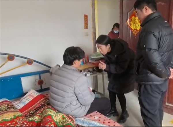 雖是初春天,但依舊寒風料峭。幾位老師一早來到了史同學位于東明縣的家中,還為他帶去了牛奶、書包等慰問品。史同學的媽媽微笑著帶著老師們走到孩子的屋前,門前的福字讓節(jié)日的氣氛還未淡去。老師們推開門看到了史同學正坐在床邊,臉上若有所思的樣子。
