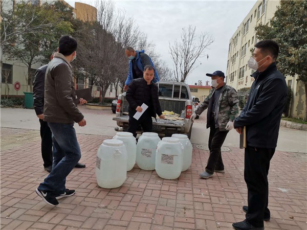 在舉國上下抗擊新冠肺炎疫情的關(guān)鍵時(shí)期,疫情牽動(dòng)著每一個(gè)人的心。2020年3月4日下午,山東民泰消毒服務(wù)有限公司為市特殊教育中心送來了5桶(計(jì)500斤)三氯異氰脲酸10%溶液,助力學(xué)??箵粢咔椤W(xué)校副校長(zhǎng)祝曉娟、姜士標(biāo)及總務(wù)處主任董濤代表學(xué)校對(duì)山東民泰消毒服務(wù)有限公司的熱心、愛心和善舉深表感謝,并接受了捐贈(zèng)。