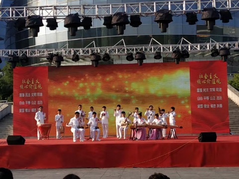 2019年9月21日,由音體組部分志愿者,帶領(lǐng)學校視障學生民樂團和聽障學生舞蹈隊,參加由市委宣傳部、文明辦舉行的弘揚社會主義核心價值觀系列廣場演出。