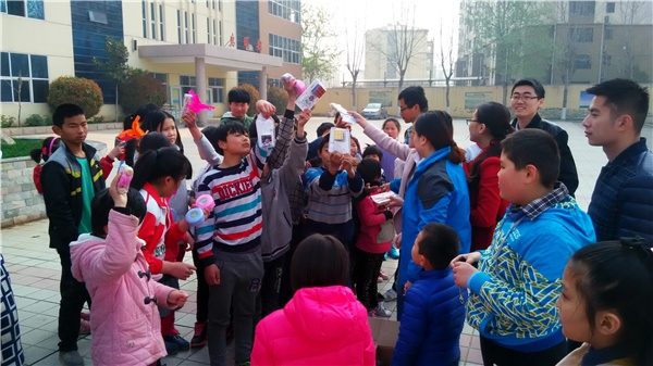 2016年3月26日,菏澤市建行鐵路支行的領(lǐng)導(dǎo)與職工一行數(shù)十 人,來到我校,與我校盲聾學(xué)生進(jìn)行聯(lián)歡活動(dòng),并給同學(xué)們帶來了一些文體活動(dòng)用品:有乒乓球及球拍、羽毛球、跳繩、魔方等物品,很受同學(xué)們的歡迎。此后,他們又與同學(xué)們一起進(jìn)行了游戲,使同學(xué)們渡過了一個(gè)快樂的星期天。