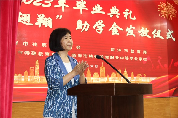 為表達(dá)對(duì)畢業(yè)生的鼓勵(lì),現(xiàn)場(chǎng)還舉行了“展翅翔”助學(xué)金發(fā)放儀式,市殘聯(lián)副理事長(zhǎng)張國(guó)華及市教育局副局長(zhǎng)王保華現(xiàn)場(chǎng)為中職畢業(yè)生們發(fā)放助學(xué)金?;顒?dòng)中,學(xué)校校長(zhǎng)祝曉娟也表達(dá)了對(duì)畢業(yè)生們深深的不舍,期望學(xué)生們能夠?qū)W會(huì)堅(jiān)持,學(xué)會(huì)感恩。