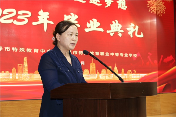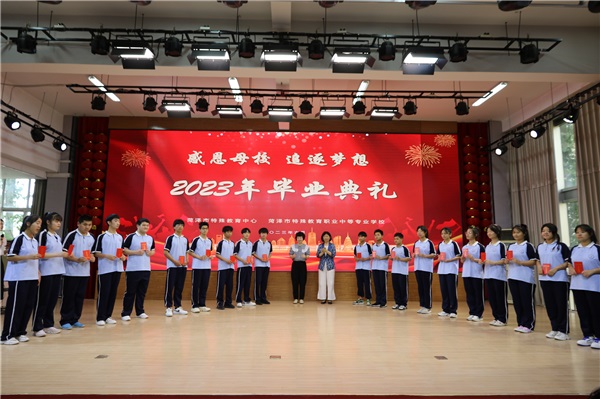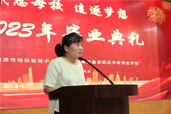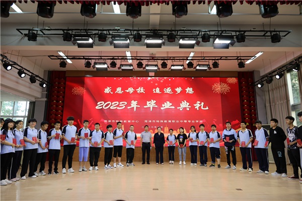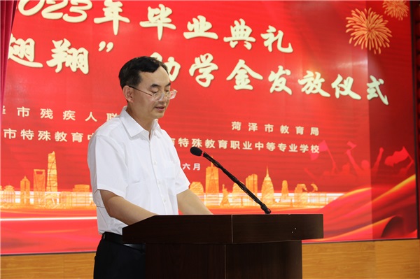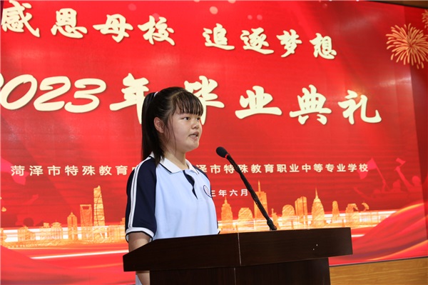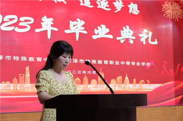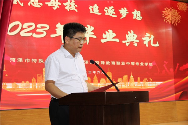 滿載感恩踏征程,勇敢逐夢(mèng)守初心。6月16日,菏澤市特殊教育中心舉行“感恩母校 追逐夢(mèng)想”2023屆學(xué)生畢業(yè)典禮,市教育局黨組成員、副局長(zhǎng)王保華、市殘聯(lián)副理事長(zhǎng)張國(guó)華,市基教科科長(zhǎng)彭培等相關(guān)領(lǐng)導(dǎo)到校參加儀式。
