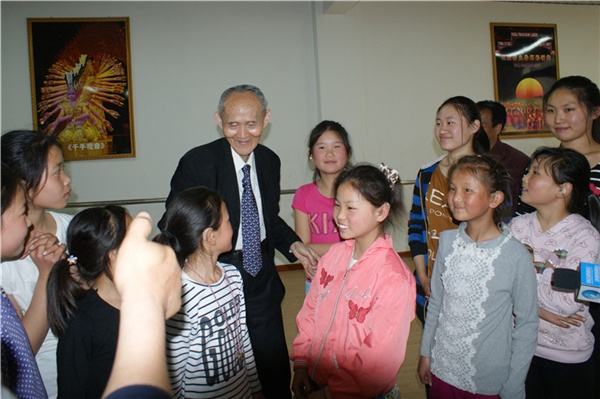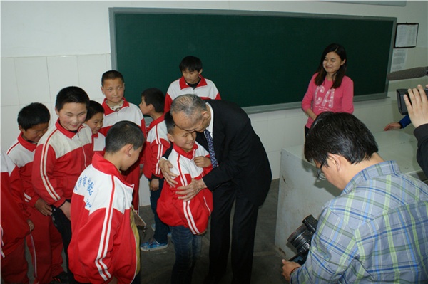 座談會(huì)結(jié)束后,在學(xué)校領(lǐng)導(dǎo)的陪同下,高先生興致勃勃地來(lái)到了師生中間,仔細(xì)地詢(xún)問(wèn)孩子們的學(xué)習(xí)、生活和課外活動(dòng)情況。當(dāng)高先生走進(jìn)舞蹈訓(xùn)練室時(shí),孩子們圍攏過(guò)來(lái),在手語(yǔ)老師的幫助下聽(tīng)高老講他過(guò)去的故事。高先生用他自身曲折的經(jīng)歷告訴聾啞孩子要不怕困難和挫折,要更加堅(jiān)強(qiáng)起來(lái),追求更加美好的未來(lái)。當(dāng)高先生來(lái)到盲部三年級(jí)教室時(shí),正值課間休息,孩子們一聽(tīng)高爺爺來(lái)啦,紛紛從外面跑回來(lái),熱情地向高爺爺問(wèn)好,并祝高爺爺健康長(zhǎng)壽,膽大的盲孩子還好奇地摸摸高爺爺?shù)哪樋纯锤郀敔旈L(zhǎng)什么樣。高老彎下腰親切地?fù)е⒆觽儞崦⒆觽兊念^,鼓勵(lì)孩子們要好好學(xué)習(xí),不斷地說(shuō)著“高爺爺愛(ài)你們”、“高爺爺愛(ài)你們”。高老看著這么懂事的孩子,直夸老師教育得好,當(dāng)老師的不容易很辛苦,并給了班主任老師一個(gè)親切地?fù)肀А?br /> 快樂(lè)的時(shí)光總是很短暫,在孩子們的歡送掌聲中高先生又將踏上他倔強(qiáng)的愛(ài)心之旅,他給師生們留下了感恩、奉獻(xiàn)和自強(qiáng)不息的精神食糧,留下了20萬(wàn)的愛(ài)心承諾和一片濃濃的特教情懷。(圖/許獻(xiàn)剛)