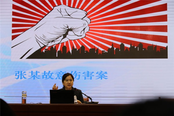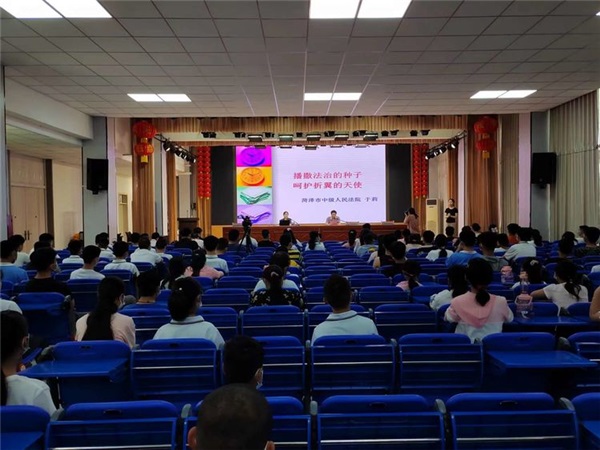 于庭長以《播撒法治的種子 呵護“折翼”的天使》為題,用大量的圖片、實例和數據,用春風化雨般的語言,結合一個個生動鮮活、觸目驚心的青少年犯罪案例,告誡同學們“勿以惡小而為之”,并教會同學們如何防范違法侵害及遇到侵害時的正確應對方法,使同學們深刻認識到學法、知法、懂法、守法、用法的重要性,進一步樹立法治意識。