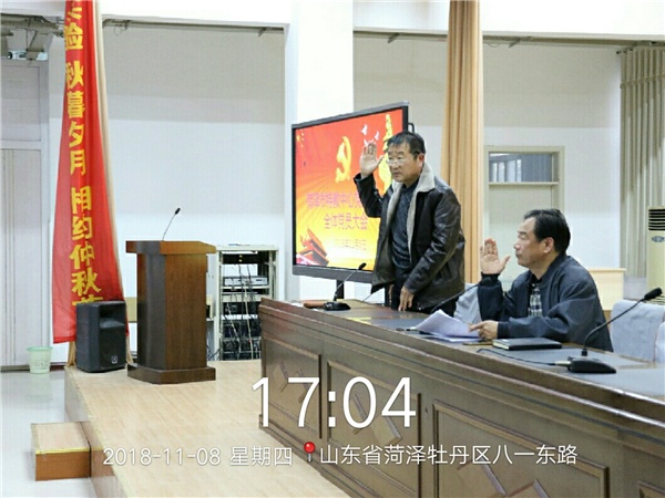 2018年11月8日下午4點35分,我校黨支部召開全體黨員大會,討論支部接收蔡鑫同志為預備黨員。會議由黨支部書記毛丕顯同志支持,議程如下: