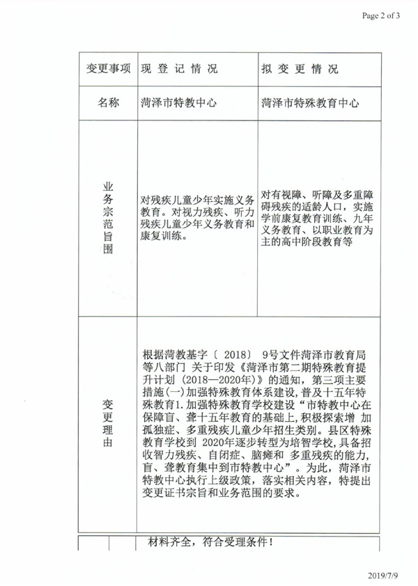 菏澤市特教中心關于變更法人證書宗旨和業(yè)務范圍的公告