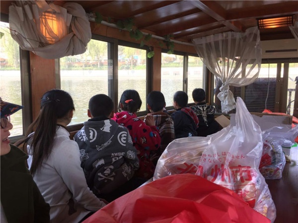 星期天,菏澤市特教中心“花都特教志愿服務(wù)隊(duì)”藝體小組的全體教師志愿者,帶領(lǐng)學(xué)校中的低視力留守兒童走出校園,感受春天的氣息。伴著和煦的春風(fēng),教師志愿者們師們手拉手領(lǐng)著留守兒童觸摸著公園里的一草一木,他們游覽了菏澤新天地公園,并乘坐了仿古游船??吹搅鴹l兒伸出了長(zhǎng)長(zhǎng)的細(xì)枝,許多不知名的樹木冒出嫩黃的枝葉,聽到小鳥不時(shí)飛過頭頂時(shí)的清脆鳴叫聲,聞著空氣彌漫著泥土的清香,觸摸著花團(tuán)簇?fù)淼幕ㄖΓ⒆觽冸y以抑制心中的喜悅,不停的興奮的喊著“春天來了,春天來了”;第一次坐上公園里的游船,他們更是興奮不已,看著哪里都新鮮,摸著哪里都親切,一路上嘰嘰喳喳說笑不停。教師志愿者則利用共乘一船之機(jī),和學(xué)生們親切的交談,對(duì)學(xué)生進(jìn)行“三愛”教育,教導(dǎo)學(xué)生要愛學(xué)習(xí)、愛勞動(dòng)、愛祖國(guó),鼓勵(lì)學(xué)生將來做一個(gè)對(duì)社會(huì)、家庭都有用的人。