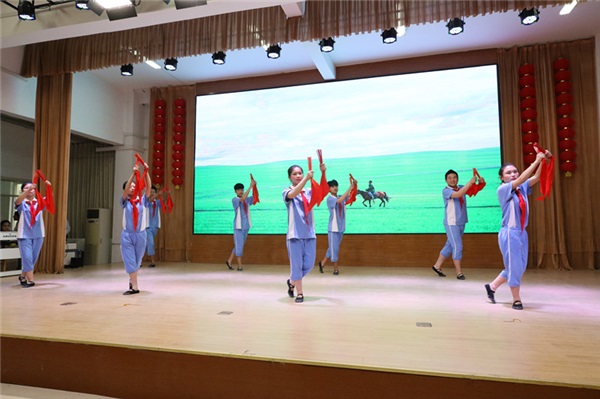 隨后在我校民樂(lè)團(tuán)的器樂(lè)合奏《金蛇狂舞》聲中,以“我與祖國(guó)共成長(zhǎng) 爭(zhēng)做小小追夢(mèng)人”為主題的“手拉手慶六一”文藝匯演拉開(kāi)了序幕,歡快的節(jié)奏瞬間把大家?guī)肓讼矐c的節(jié)日氛圍里。本次文藝匯演由我校和廣州路小學(xué)的少先隊(duì)員代表聯(lián)合承辦。節(jié)目形式多樣,內(nèi)容豐富多彩,整臺(tái)演出匯集了舞蹈、情景劇、大合唱、獨(dú)唱、朗誦等不同形式,有舞蹈串燒《十二個(gè)啦啦球》、幽默風(fēng)趣的情景劇《B超風(fēng)云》、具有蒙古風(fēng)情的舞蹈《筷子舞》、吉他口琴合奏朗誦《致橡樹(shù)》、大合唱《不忘初心》及深情動(dòng)聽(tīng)的合唱《雨花石》等。同學(xué)們用動(dòng)人的旋律、悅耳的歌聲和優(yōu)美的舞姿,把他們對(duì)生活的熱愛(ài)、對(duì)未來(lái)的憧憬表現(xiàn)得淋漓盡致。整個(gè)活動(dòng)童趣盎然、充滿(mǎn)活力,每個(gè)節(jié)目都展現(xiàn)了孩子們的童真、童趣、自信和風(fēng)采,在全場(chǎng)觀眾陣陣熱烈的掌聲中活動(dòng)以舞蹈《最美宮燈紅》畫(huà)上了圓滿(mǎn)的句號(hào)。