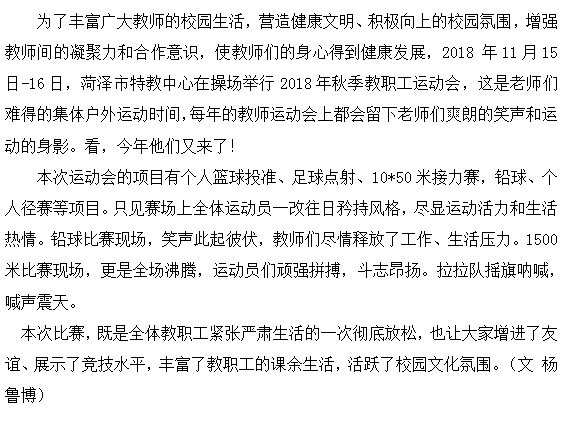 菏澤市特教中心舉行2018年教職工秋季運動會
