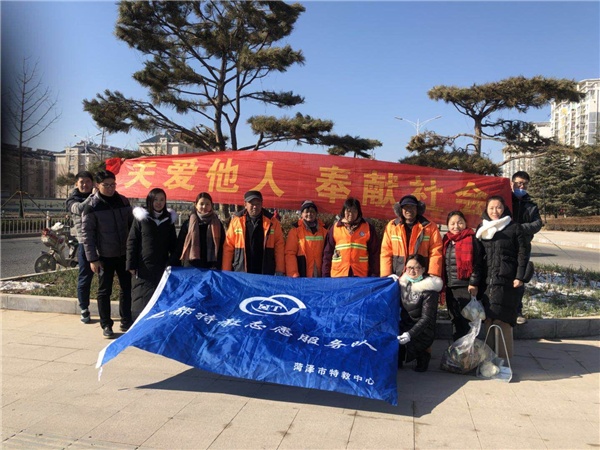 冬季,天寒地凍,環(huán)衛(wèi)工人忍受?chē)?yán)寒堅(jiān)持工作,清理垃圾、保潔環(huán)境。為了關(guān)愛(ài)工作在一線的環(huán)衛(wèi)工人,1月9日上午10點(diǎn),來(lái)自菏澤市特教中心花都志愿者康復(fù)組小分隊(duì)的老師們,帶著熱粥,包子等,慰問(wèn)了正在清掃作業(yè)的一線環(huán)衛(wèi)工人,并協(xié)助他們打掃街道,清理垃圾。環(huán)衛(wèi)工人用勤勞的雙手為城市環(huán)境衛(wèi)生付出了辛勤和汗水,無(wú)論嚴(yán)寒、酷暑,他們都堅(jiān)守在自己崗位上,令人敬佩。大家紛紛表示:能夠參加為環(huán)衛(wèi)工人送溫暖、獻(xiàn)愛(ài)心活動(dòng),大家都感到無(wú)比的驕傲和自豪。愛(ài)心接力還在繼續(xù),要讓每位環(huán)衛(wèi)工人都能享受社會(huì)大家庭的溫暖,讓他們的這個(gè)冬天不再寒冷。(文/董紅艷)