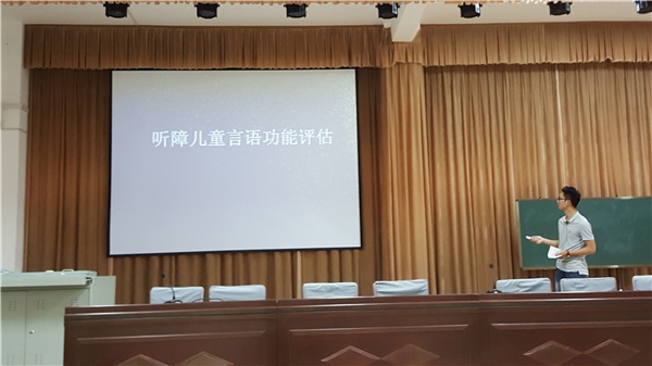 2016年5月26日,康復(fù)部的常衛(wèi)亞老師為全校老師帶來了關(guān)于聽障兒童言語功能評估方面的康復(fù)知識講座。本次講座主要圍繞呼吸功能評估、發(fā)聲功能評估、共鳴功能評估三大方面展開論述。講座過程中,主講老師聲音洪亮,通過對不同言語障礙類型的模仿示范發(fā)音,給全校教師留下了深刻印象,同時也加深了教師們對并不同言語障礙類型的了解。本次講座提高了教師們的康復(fù)知識水平,同時也體現(xiàn)了醫(yī)教結(jié)合的理念。(文/常衛(wèi)亞)
