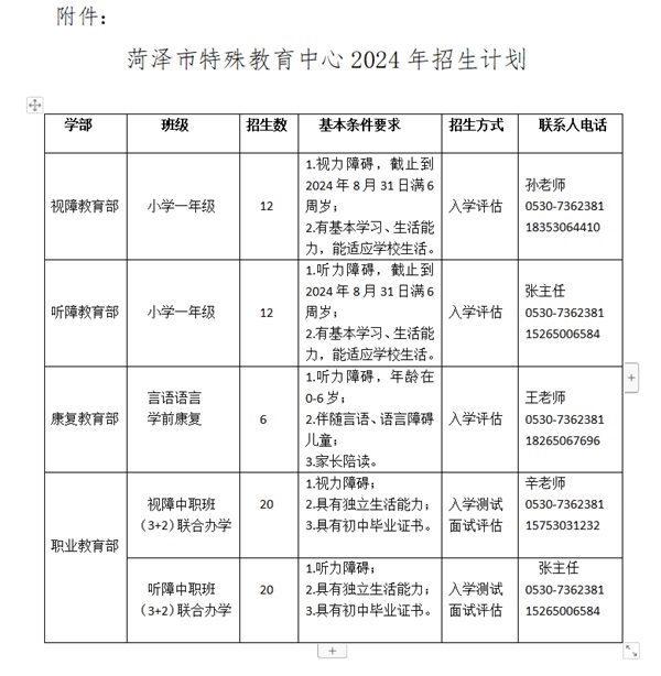 附件:菏澤市特殊教育中心2024年招生計(jì)劃