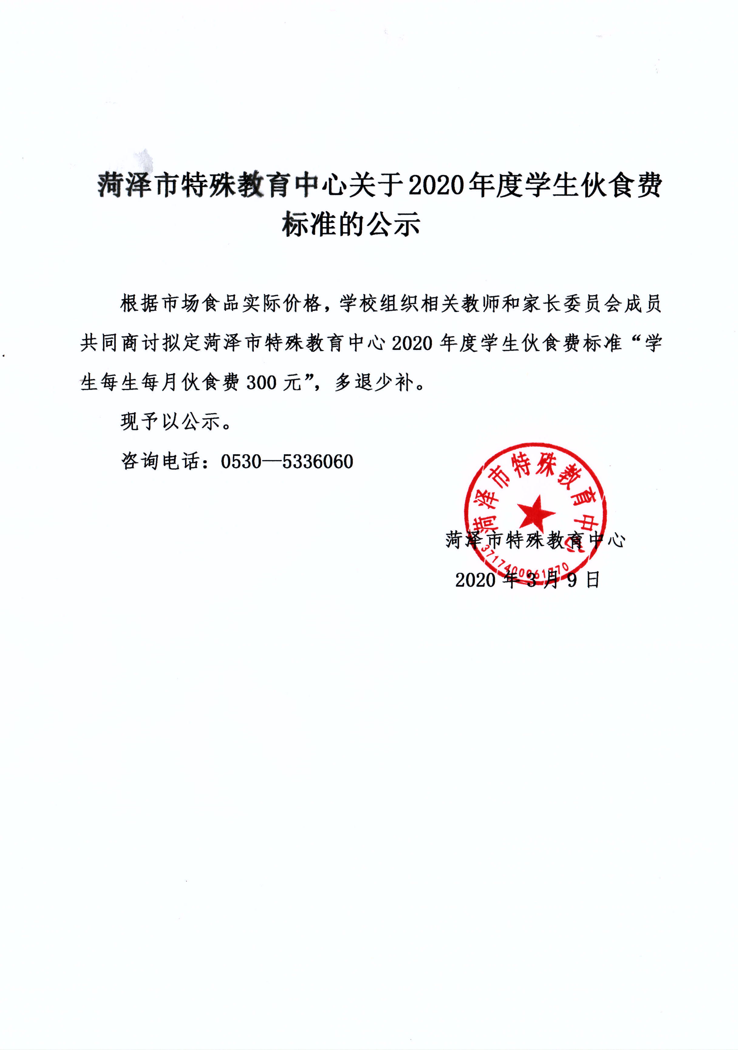 菏澤市特殊教育中心關(guān)于2020年度學(xué)生伙食費(fèi)標(biāo)準(zhǔn)的公示