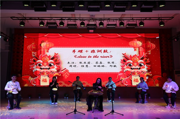 聯(lián)歡會上教師們精心準(zhǔn)備了舞蹈、歌曲、朗誦、樂器演奏等節(jié)目,形式多樣、精彩紛呈,讓人目不暇接。《唐詩里的中國》贊頌著中華源遠(yuǎn)流長的優(yōu)秀傳統(tǒng)文化;《舞動中國》輕盈的舞姿跳出各民族的風(fēng)采;《福氣要來到》寓意滿滿為大家送來祝福。古箏、二胡、手碟、非洲鼓、手風(fēng)琴、鋼琴……傳統(tǒng)樂器與現(xiàn)代樂器輪番上陣,讓在場的老師們享受了一場聽覺盛宴。精彩的表演,不斷贏得大家的掌聲和歡呼聲。
