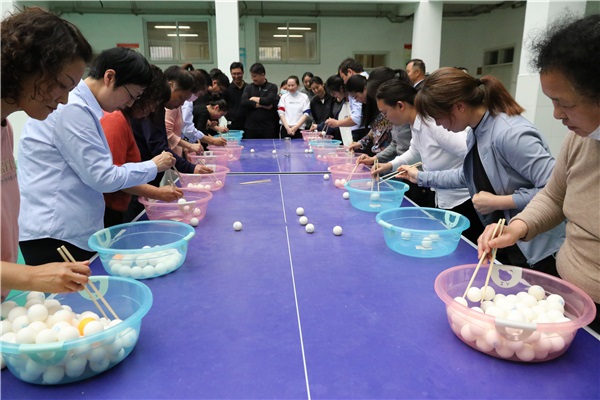 活動前,學(xué)校工會認(rèn)真擬定活動方案,為兼顧不同年齡階段的教職工,鼓勵全員參與活動,最終學(xué)校確定釣瓶接力、搭橋過河接力、筷子夾球接力、指路踩球接力、跳大繩、套圈等作為比賽項(xiàng)目。賽前教師們利用課余時間積極備賽,研究技巧。