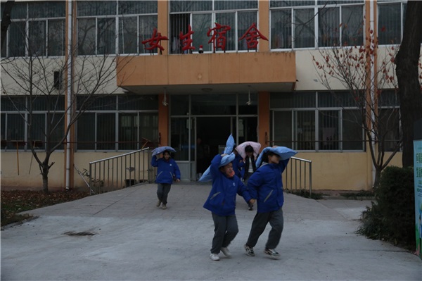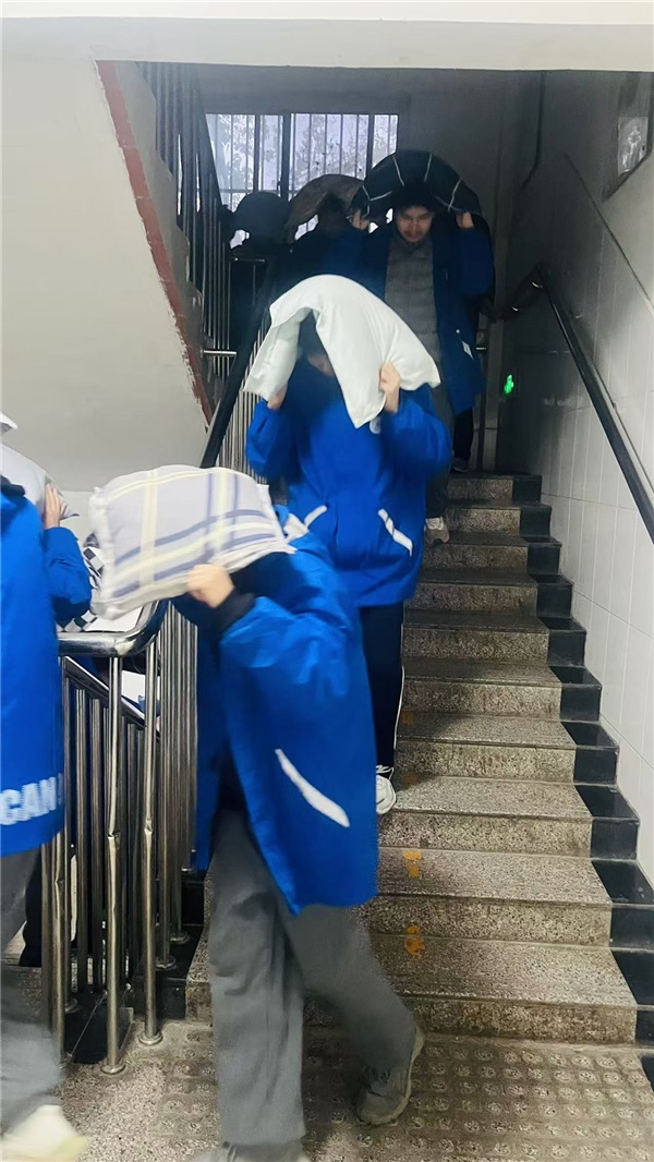 警報(bào)聲響,演練正式開始。宿舍樓里的同學(xué)們立即起床,就地進(jìn)行應(yīng)急避險(xiǎn),大家用枕頭保護(hù)住頭部,屈身坐在堅(jiān)固物體旁。第二聲警報(bào),教師們按照預(yù)定的疏散路線組織學(xué)生迅速、有序地離開宿舍樓向室外疏散集合點(diǎn)撤離。演練過程中,師生遵循“震時(shí)就地避險(xiǎn),震后迅速撤離”的應(yīng)急避震準(zhǔn)則,教師們各司其職、認(rèn)真負(fù)責(zé),同學(xué)們撤離有序、沉著冷靜,做到了無一人掉隊(duì)。