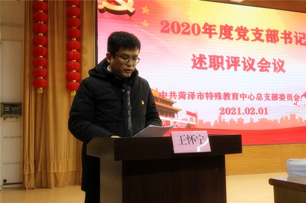 為進一步夯實黨支部書記抓黨建工作主體責任,推動黨組織建設(shè)全面進步。根據(jù)上級通知要求,2021年2月1日,菏澤市特殊教育中心在多功能室召開2020年度黨支部書記述職評議會議。會議由黨總支書記毛丕顯同志主持。