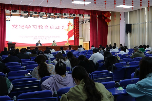 2024年4月17日下午,菏澤市特殊教育中心在多功能廳召開黨紀學習教育啟動會,對我校黨紀學習教育進行動員部署,學校黨總支書記孔祥英同志作動員講話,會議由校黨總支副書記、校長祝曉娟同志主持,學校全體黨員教師參加會議。
