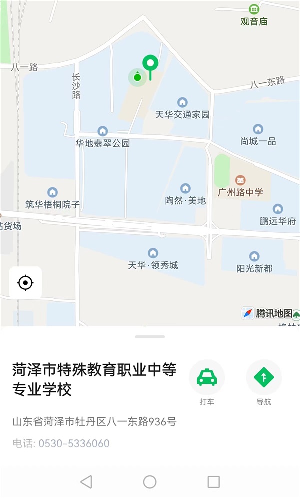 路線:導(dǎo)航菏澤市特殊教育職業(yè)中等專業(yè)學(xué)校,如圖所示