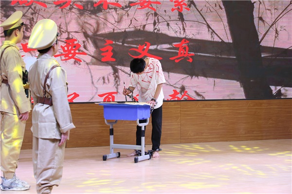 本次活動(dòng)主要面向?qū)W校聽障部的學(xué)生,在表演前,各班級(jí)進(jìn)行了周密的策劃,并利用課余時(shí)間認(rèn)真排練,反復(fù)練習(xí)動(dòng)作、臺(tái)詞、手語等,同學(xué)們精心準(zhǔn)備服裝、道具,齊心協(xié)力開展創(chuàng)作,力求通過“演技”將文本中革命烈士的英雄氣概展現(xiàn)出來。