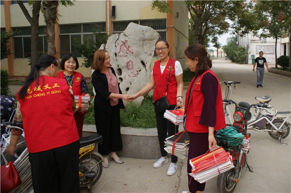 花城義工向菏澤市特教中心盲生捐獻(xiàn)掛歷作業(yè)本