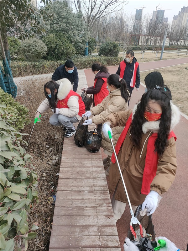 凜冽的寒風(fēng)擋不住黨員志愿者的熱情和干勁?;顒又校h員志愿者們身穿紅馬甲,手持垃圾鉗和垃圾袋等工具,對校園大門口主干道兩側(cè)及翡翠公園的垃圾進(jìn)行集中清理。從草叢里、灌木叢里的塑料袋、碎紙屑、果皮,到堆滿垃圾的垃圾桶旁邊的廢棄物,黨員志愿者們每處死角都不放過,還有的志愿者戴上手套就直接動手撿拾零散的垃圾,大家配合默契、干勁十足,雖然衣服上、頭上、手上都沾滿了灰塵,但這絲毫沒有影響到黨員志愿者們的積極性。不到一個小時整個公園的環(huán)境煥然一新,所有垃圾也都裝進(jìn)自備的塑料袋,統(tǒng)一收集、處理,周圍經(jīng)過的小區(qū)居民也紛紛豎起了大拇指。