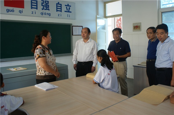 在職教樓解市長饒有興趣地參觀了職業(yè)班學生的木雕作品展并與職業(yè)班指導教師親切交談。隨后解市長一行深入教師辦公室和課堂,詳細詢問了一線教師的教學工作情況。解市長談到了特殊教育教師工作的特殊性和重要性,他說:“特殊教育是整個教育的一個組成部分,特教教師在其中發(fā)揮著重要的作用。”他稱贊特教教師點燃了殘疾孩子家庭的希望,同時對市特教中心的工作給予了高度評價,他說市特教中心作為菏澤市特殊教育的龍頭學校,近年來成績斐然,獲得了一個又一個的榮譽,為菏澤的教育事業(yè)做出很大貢獻。他寄希望于市特教中心在今后的工作中百尺竿頭更進一步,進一步提升教育教學質量,把學生培養(yǎng)好,讓更多的家庭看到希望。解市長還當場表態(tài)為市特教中心解決學校急需的教學設施改善資金。