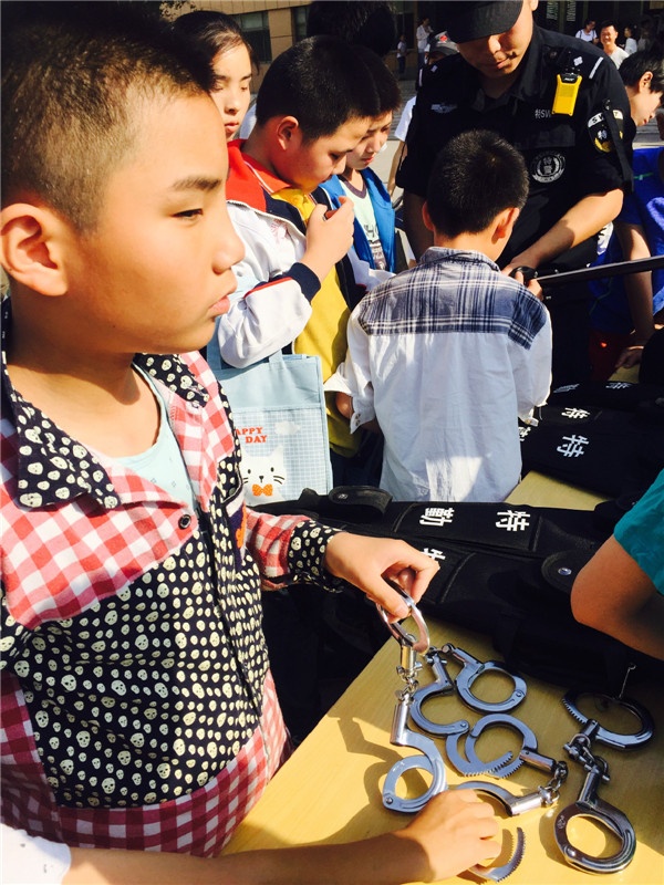 早上七點(diǎn),警察叔叔就開(kāi)著威武的警車在教學(xué)樓前等著同學(xué)們。同學(xué)們可好奇了,東瞅瞅,西摸摸,還一直問(wèn)這個(gè)、那個(gè)按鈕是什么?坐上了警車,聽(tīng)著警笛聲,別提多自豪了。歡歌笑語(yǔ),到了警營(yíng)。參觀了防暴處,零距離接觸到了警用裝備,有的同學(xué)還帶上了防彈帽,挎上了槍,那是一個(gè)神氣??!接下來(lái)特警叔叔為我們獻(xiàn)上了精彩的格斗表演,我們同學(xué)們對(duì)警察叔叔的敬佩、崇拜溢于臉上。表演過(guò)后又聽(tīng)了警察阿姨給我們講解了毒品知識(shí),拒絕毒品,從每一個(gè)娃娃抓起。最后我們來(lái)到了多媒體會(huì)議室,唱國(guó)歌、做游戲,我們學(xué)校的同學(xué)也獻(xiàn)上了我們精彩的節(jié)目,張一波笙獨(dú)奏《金蛇狂舞》和張遠(yuǎn)航同學(xué)的葫蘆絲獨(dú)奏《軍港之夜》受到大家的一致好評(píng),現(xiàn)場(chǎng)掌聲雷動(dòng)……