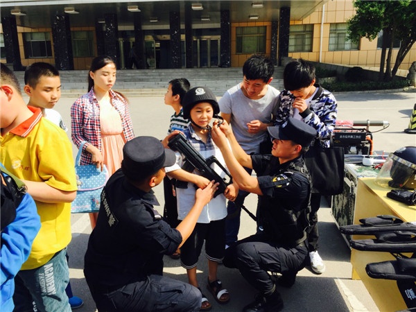 “六一”前夕,菏澤公安局牡丹分局的警察利用假期接送盲聾生到警營(yíng),讓他們體驗(yàn)坐特警車、觸摸警用設(shè)備、看特警訓(xùn)練、聽拒絕毒品知識(shí)講座、合唱國(guó)歌等,讓學(xué)生們親身體驗(yàn)了一把警營(yíng)生活。