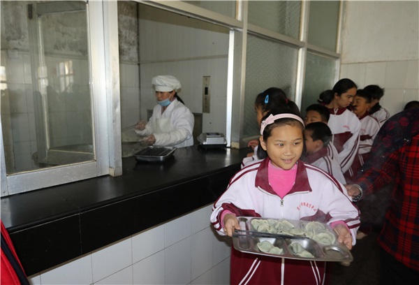 所有參與活動(dòng)的志愿者們聚集在學(xué)校食堂里,揉面、搟面皮兒、包餃子……大家分工有序、配合默契,忙的不亦樂乎。每一位志愿者手中握住的餃子,都像是用手包裹著對(duì)學(xué)生們的愛。在大家共同努力下,一盤盤整齊飽滿的餃子就包好了。中午吃飯時(shí)間到,食堂充滿了餃子的香味,熱騰騰的餃子端上桌來,看著學(xué)生們開心地吃著自己親手包的餃子,每一位志愿者心中都感到十分滿足。