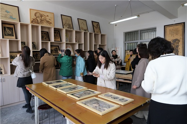 研討結束后,教研團隊走進學校美術方面的各個功能教室,參觀了學生的刻瓷、木雕、版畫等作品。大家對學生的作品贊不絕口,同時也被殘疾孩子們自強不息的精神所深深打動。活動最后,教研團隊的老師們還為聽障學生們送上了他們親手制作的美術作品,希望孩子們在無聲的世界里,一樣能夠綻放精彩。