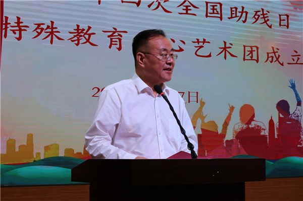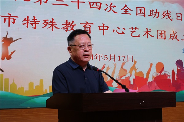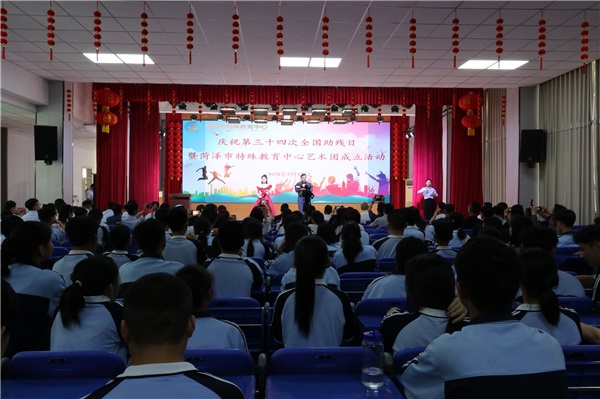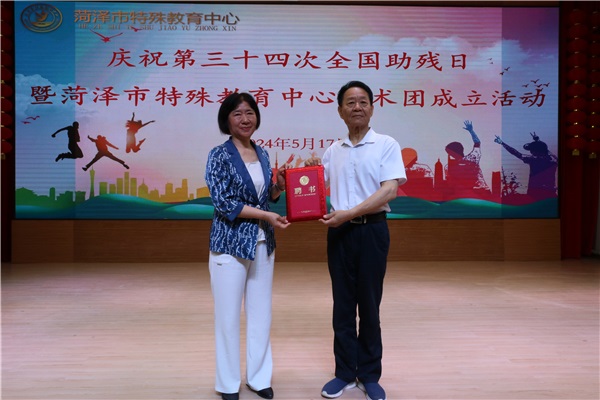 為慶祝第34次全國助殘日,進一步豐富殘疾學(xué)生的校園文化生活,關(guān)注殘疾學(xué)生的全面發(fā)展,營造濃厚的校園藝術(shù)氛圍,5月17日,菏澤市特殊教育中心舉辦藝術(shù)團成立活動。市教體局黨組書記史長華、市教體局副局長王保華、市殘聯(lián)黨組成員副理事長高云峰、市教體局二級調(diào)研員房惠敏及各縣區(qū)學(xué)校校長等領(lǐng)導(dǎo)參與本次活動。