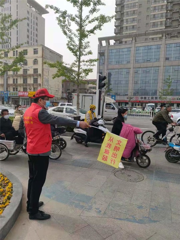 丹陽(yáng)天香路口是我市城市旅游景點(diǎn)最多的路口,周邊冀魯豫紀(jì)念館、天香公園、牡丹廣場(chǎng)和趙王河公園是我們城市的名片,我們深感責(zé)任重大,在整個(gè)志愿活動(dòng)過(guò)程中,不僅要對(duì)不文明的交通行為進(jìn)行勸導(dǎo),還要擔(dān)負(fù)文明指引、應(yīng)急救援、疫情防控等服務(wù),本次志愿活動(dòng)不僅對(duì)不文明的交通行為起到警示作用,又同時(shí)勸導(dǎo)不文明行為2起,外地來(lái)菏游客指引30多人次,獲得游客的大加贊賞。(文/圖 趙付穩(wěn))