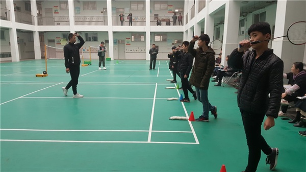 靳鵬宇老師在分解發(fā)高遠(yuǎn)羽毛球動作
