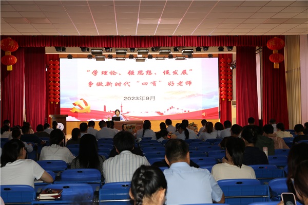 9月8日,菏澤市特殊教育中心黨總支書記孔祥英為學校全體教師講授“學理論 強思想 促發(fā)展”主題黨課。