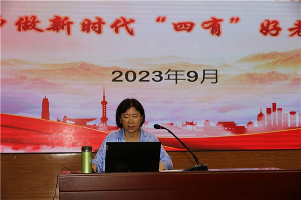 孔祥英強調(diào),愛崗敬業(yè)、無私奉獻是師德的基本要求;熱愛學生、教書育人是師德的核心;努力創(chuàng)新是師德的新發(fā)展,要讓學生成為學習的主人;以身作則、為人師表是師德的人格力量;終身學習、不斷進取是師德的升華。國之大家,教育為本;教育大計,教師為本。我們每一位教育工作者都應該謹記習總書記教誨,力做新時代“四有好老師”,當好“四個引路人,愛是教育的靈魂,教育的原點就是愛,教師肩負著立德樹人的任務,有愛才有責任,愛教育、愛學生是每一個教師應盡的義務。
