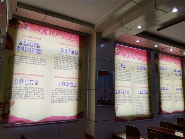 在黨員活動室,窗簾的遮光功能和黨史知識展示被獨具匠心地融合在一起。