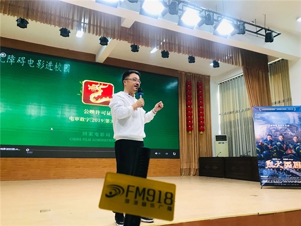 為慶祝第36個國際盲人節(jié),2019年10月15日下午,“無障礙電影進校園”全國愛心聯(lián)動(第四季)走進菏澤市特殊教育中心,學(xué)校全體盲生在三樓多功能室參與了這場視覺盛宴。本次活動為學(xué)生們帶了一部講述消防員故事的電影——《烈火英雄》,菏澤市廣播電視臺音樂廣播(FM91.8)主持人李子涵擔(dān)任本次活動的現(xiàn)場解說。通過主持人對影片精準(zhǔn)的口語描述,精彩的講解,讓所有觀看影片的盲生沒有障礙地欣賞和理解影片。 FM91.8音樂廣播總監(jiān)楊通為學(xué)生們介紹本次活動 音樂廣播(FM91.8)主持人李子涵正在進行現(xiàn)場解說