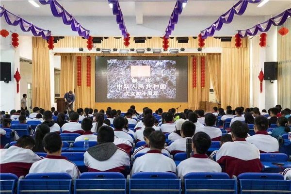 隨后全校盲生共同觀看影片《開國大典》,該影片于1989年9月21日首映,是長春電影制片廠向新中國成立40周年的獻(xiàn)禮之作。影片用紀(jì)實(shí)的手法展現(xiàn)了從中國共產(chǎn)黨取得三大戰(zhàn)役的勝利開始,直至1949年10月1日在北京舉行開國大典的歷史過程 。